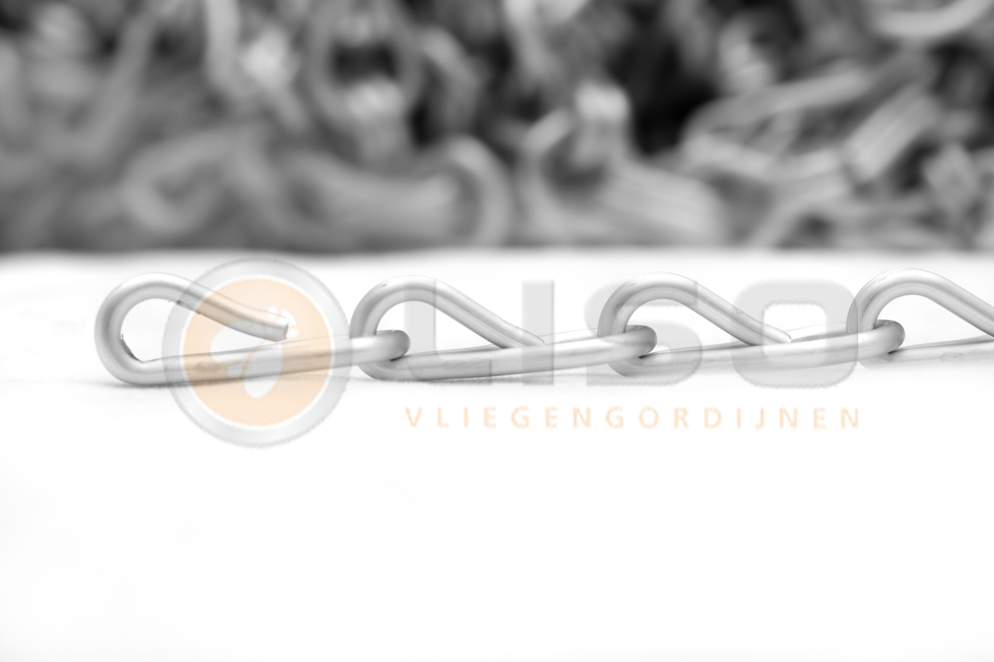 De aluminium ketting wordt los geleverd, zonder rail of ophangmaterialen, en is uitsluitend bedoeld als aanvulling op een bestaand kettinggordijn.