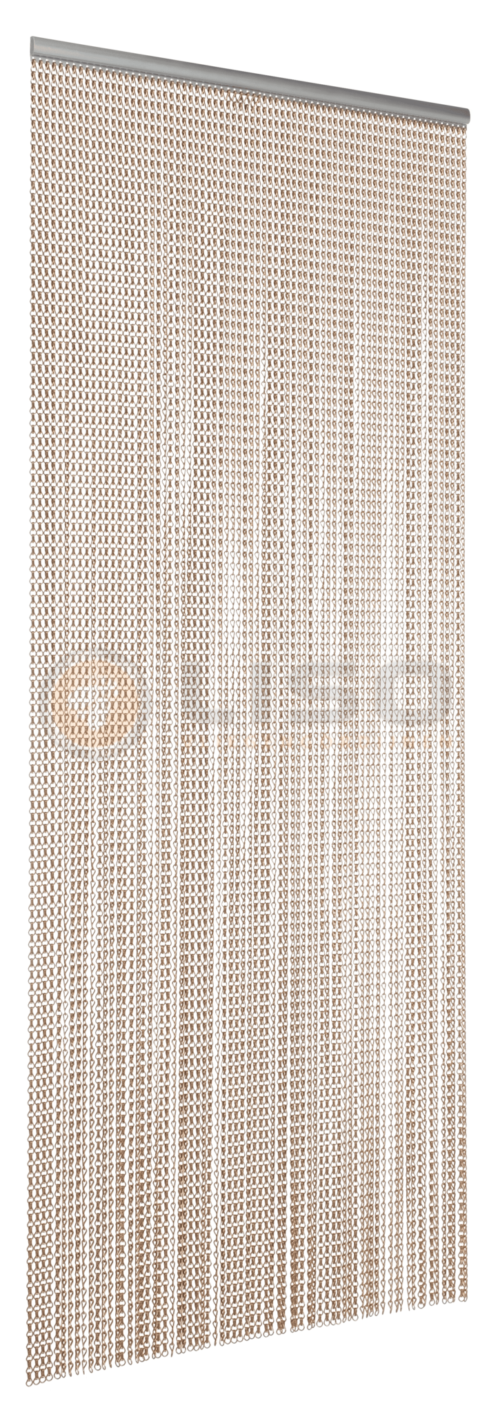 Het Aluminium Liso ® Kettinggordijn in de kleur Bruin/Brons is een vliegengordijn met een mooie luxe uitstraling. Het vliegengordijn sluit mooi af, hangt door zijn eigen gewicht snel weer stil en waait niet op bij wind. Dit Vliegengordijn wordt kant en klaar op maat geleverd inclusief ophangsteunen naar keuze (kozijn- of plafondbevestiging) om het gordijn op te hangen. Het aluminium kettinggordijn komt met een uniek door Liso ® ontwikkelde aluminium ophangrail welke netjes is afgewerkt met dopjes op de uiteinden.