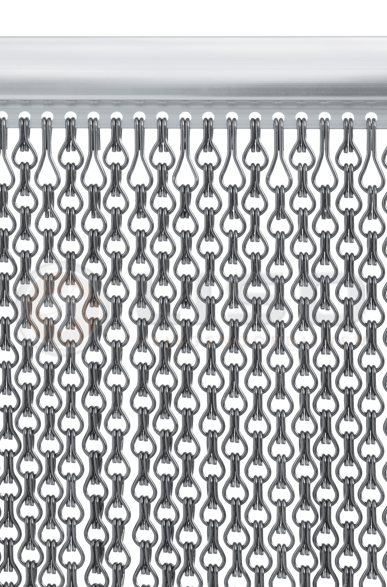 Het Aluminium Liso ® Kettinggordijn in de kleur Antraciet/Grijs Extra Dicht is een vliegengordijn met een mooie luxe uitstraling met een visueel volle impact. Het vliegengordijn sluit mooi af, hangt door zijn eigen gewicht snel weer stil en waait niet op bij wind. Dit Vliegengordijn wordt kant en klaar op maat geleverd inclusief ophangsteunen naar keuze (kozijn- of plafondbevestiging) om het gordijn op te hangen. Het aluminium kettinggordijn komt met een uniek door Liso ® ontwikkelde aluminium ophangrail welke netjes is afgewerkt met dopjes op de uiteinden.