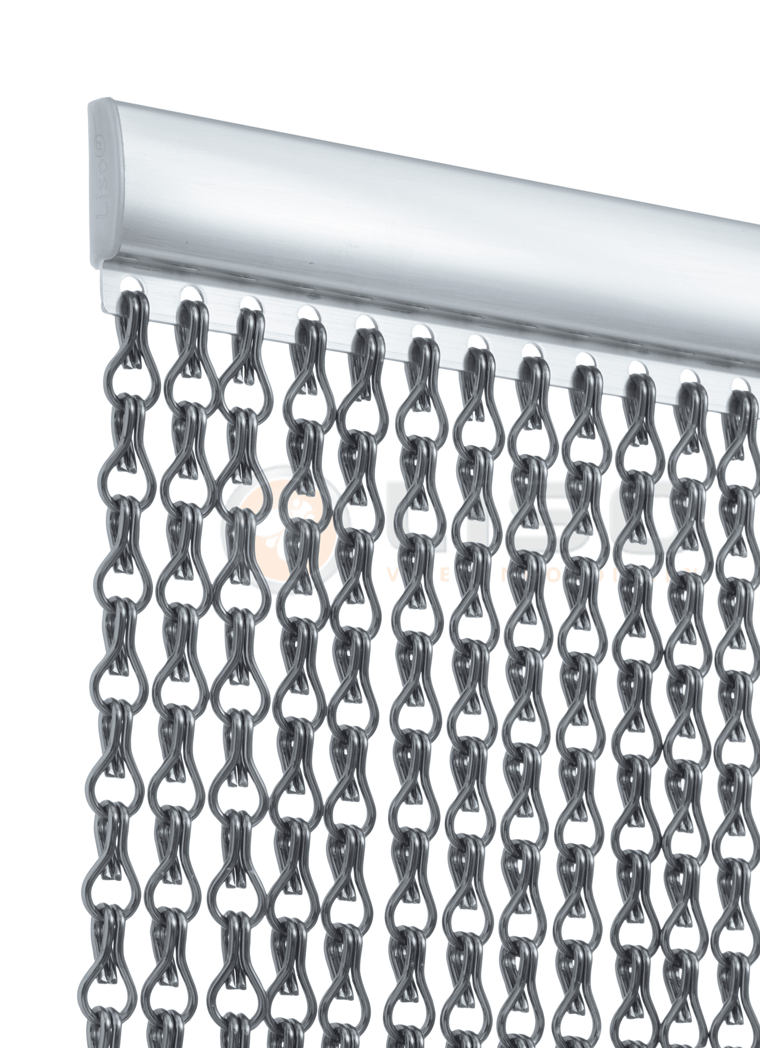 Door het eigen gewicht hangen de kettingen mooi recht, sluit het gordijn netjes af en waait het nauwelijks op bij wind. Het kettinggordijn wordt kant-en-klaar geleverd, inclusief de originele Liso® aluminium ophangrail met einddopjes. Tijdens het bestellen kiest u voor kozijn- of plafondsteuntjes, zodat u het gordijn eenvoudig kunt monteren.
