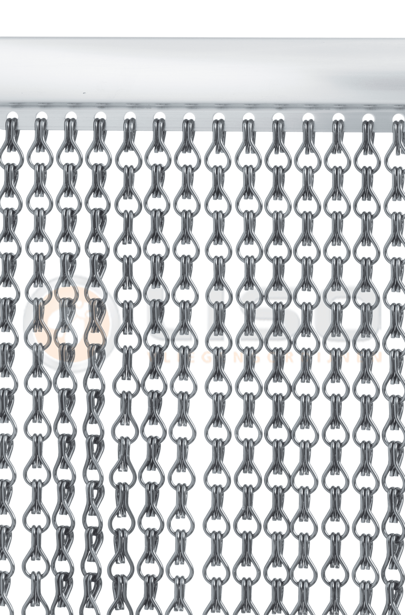 | Motief Dit aluminium kettinggordijn wordt standaard geleverd met alle schakels harmonieus naast elkaar wat een rustig effect geeft. Er zitten ± 78 slierten op één meter Liso® rail. Het is ook mogelijk om het kettinggordijn in deze kleur als 'extra dicht' te leveren waarbij de schakels om-en-om verspringen van elkaar en er ± 100 slierten in één meter Liso® rail verwerkt zijn Bekijk 'extra dicht' versie ![]() Standaard dichtheid |