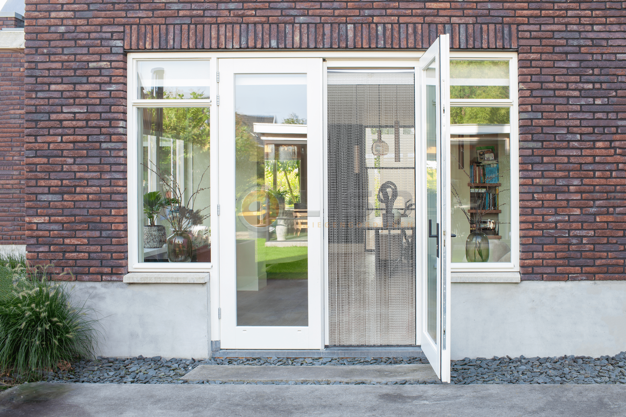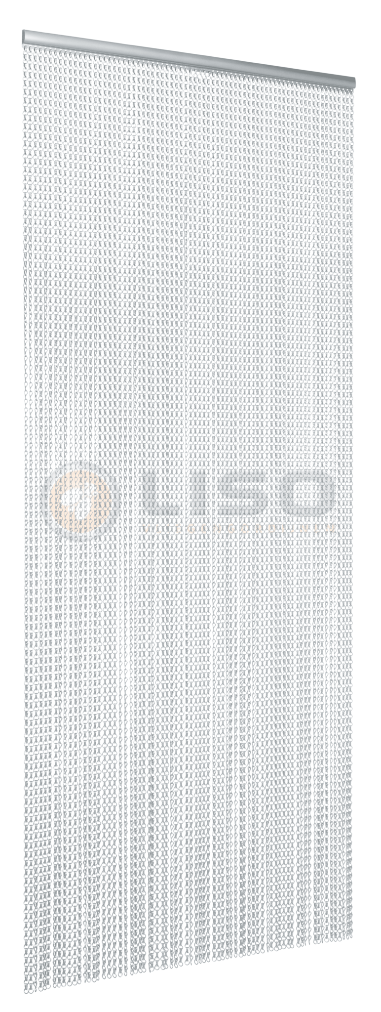 Door het eigen gewicht hangen de kettingen mooi recht, sluit het gordijn netjes af en waait het nauwelijks op bij wind. Het kettinggordijn wordt volledig op maat gemaakt en kant-en-klaar geleverd, inclusief de originele Liso® aluminium ophangrail met einddopjes. Tijdens het bestellen kiest u voor kozijn- of plafondsteuntjes.