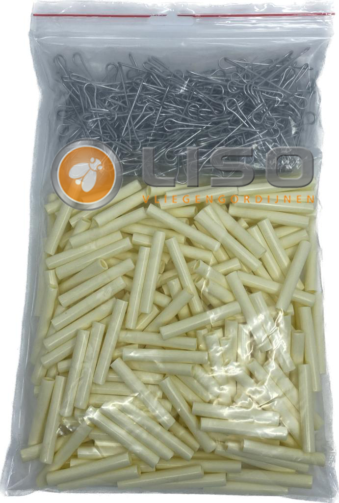 De inhoud van deze verlengset is afgestemd op de gekozen verlenging. Afhankelijk van de geselecteerde optie ontvangt u het juiste aantal hele hulsjes en hele rijghaken. Hiermee kan het volledige hulzengordijn gelijkmatig worden verlengd, zodat de verdeling en werking behouden blijven.