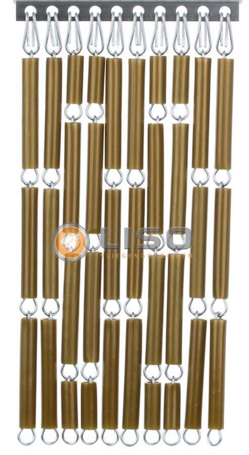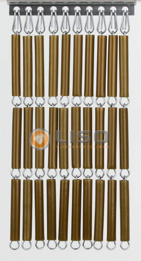 Het Liso® hulzengordijn in Parelmoer Goud sluit zeer nauw aan, hangt strak door zijn eigen gewicht en waait niet op bij tocht of wind. Het wordt geleverd als compleet doe-het-zelf pakket inclusief alle onderdelen om het gordijn eenvoudig zelf samen te stellen. De originele aluminium ophangrail – exclusief ontwikkeld door Liso® – is voorzien van nette einddopjes voor een verzorgde afwerking.