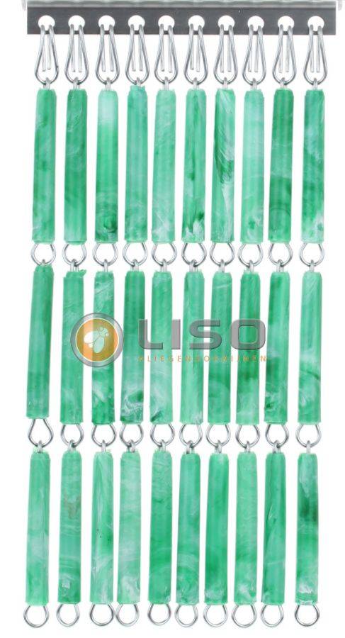Het Vliegengordijn van model Liso ® in de kleur Groen Gevlamd (LISO 0017, Groen gevlamd) is zeer nauwsluitend, hangt door zijn eigen gewicht snel weer stil en waait niet op bij wind. Dit Vliegengordijn komt als compleet doe-het-zelf pakket inclusief alle materialen die u nodig heeft om het vliegengordijn in elkaar te zetten. Het doe-het-zelf pakket komt met een uniek door Liso ® ontwikkelde aluminium ophangrail welke netjes is afgewerkt met dopjes op de uiteinden.