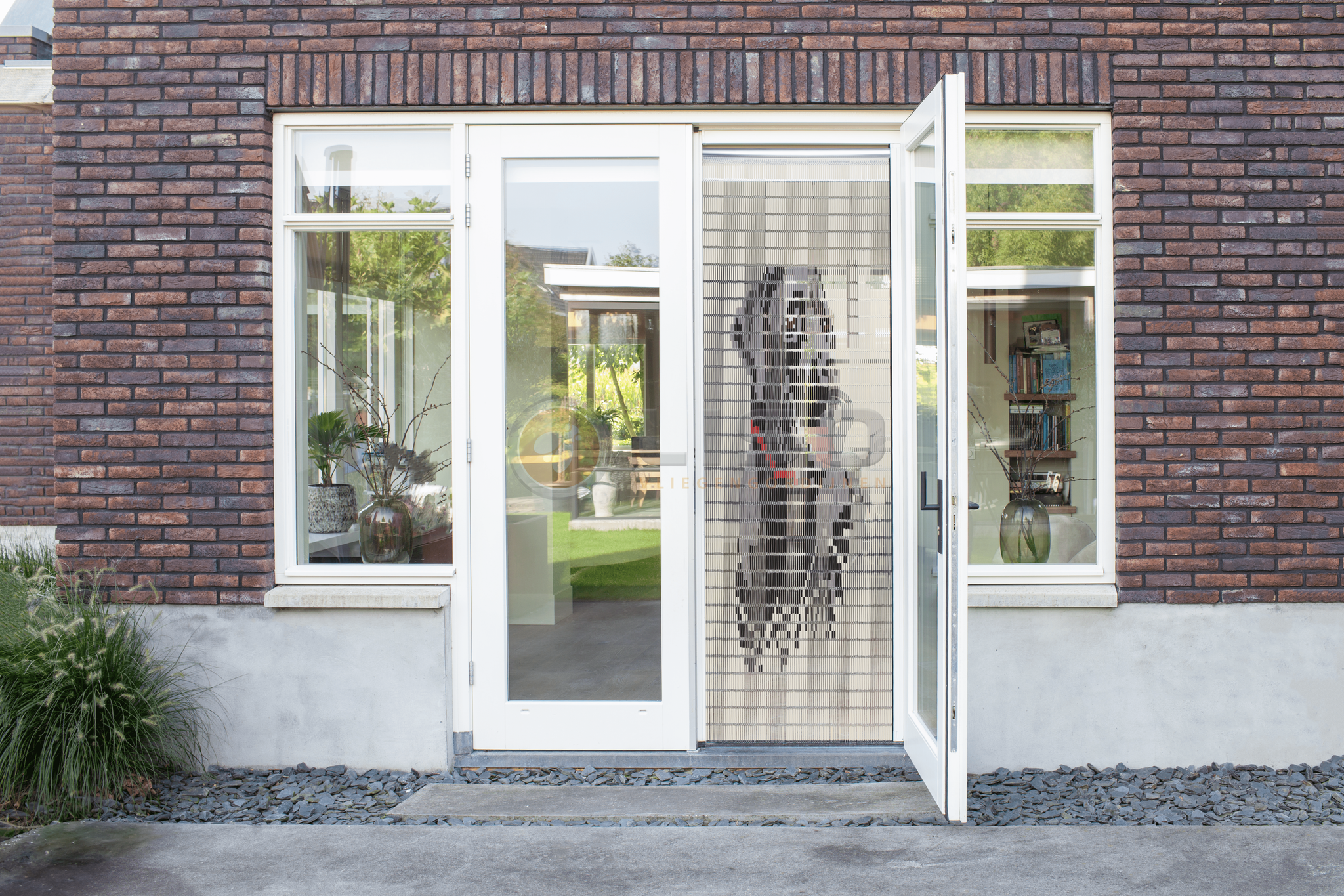 Liso ® Vliegengordijn met Labrador is een prachtig gedetailleerd vliegengordijn, perfect voor de dierliefhebber. Dit Vliegengordijn is zeer nauwsluitend, hangt door zijn eigen gewicht snel weer stil en waait niet op bij wind. Dit Vliegengordijn komt als compleet doe-het-zelf pakket inclusief alle materialen die u nodig heeft om het vliegengordijn in elkaar te zetten. Het doe-het-zelf pakket komt met een uniek door Liso ® ontwikkelde aluminium ophangrail welke netjes is afgewerkt met dopjes op de uiteinden.