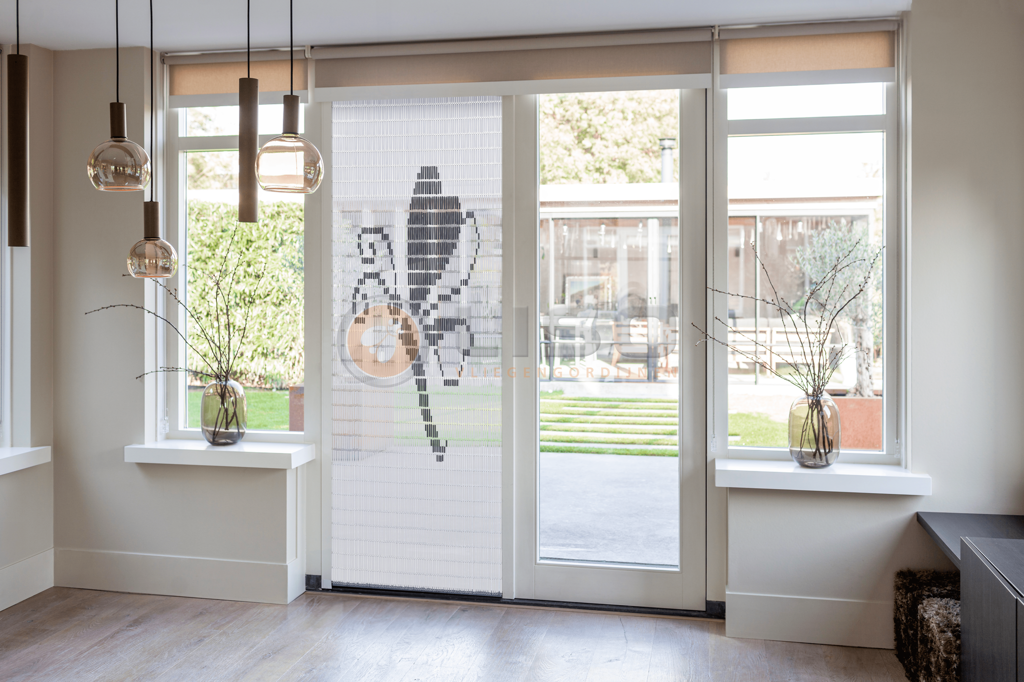 Liso ® Vliegengordijn met de afbeelding Libelle is zeer geschikt om Uw deur mee op te fleuren, perfect voor de dierenliefhebber. Dit Vliegengordijn is zeer nauwsluitend, hangt door zijn eigen gewicht snel weer stil en waait niet op bij wind. Dit Vliegengordijn wordt voor u op de gewenste maat gemaakt Het vliegengordijn komt met een uniek door Liso ® ontwikkelde aluminium ophangrail welke netjes is afgewerkt met dopjes op de uiteinden.