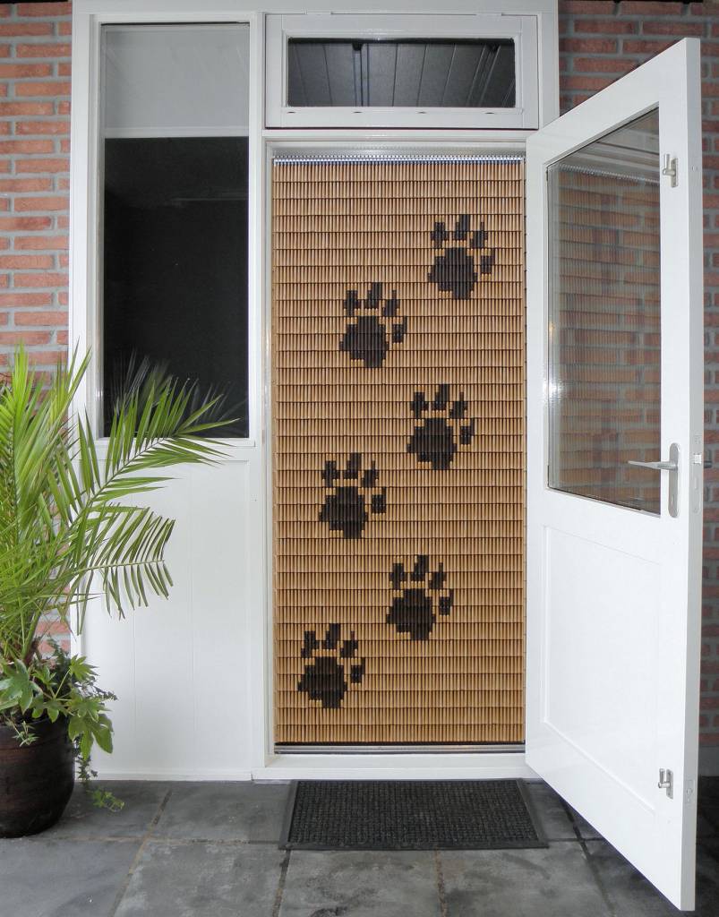 Het Vliegengordijn van model Liso ® Miami Woodlook met het motief Hondenpootjes is zeer nauwsluitend, hangt door zijn eigen gewicht snel weer stil en waait niet op bij wind. Het Vliegengordijn komt als compleet doe-het-zelf pakket inclusief alle materialen die u nodig heeft om het vliegengordijn in elkaar te zetten. Het doe-het-zelf pakket komt met een uniek door Liso ® ontwikkelde aluminium ophangrail welke netjes is afgewerkt met dopjes op de uiteinden.