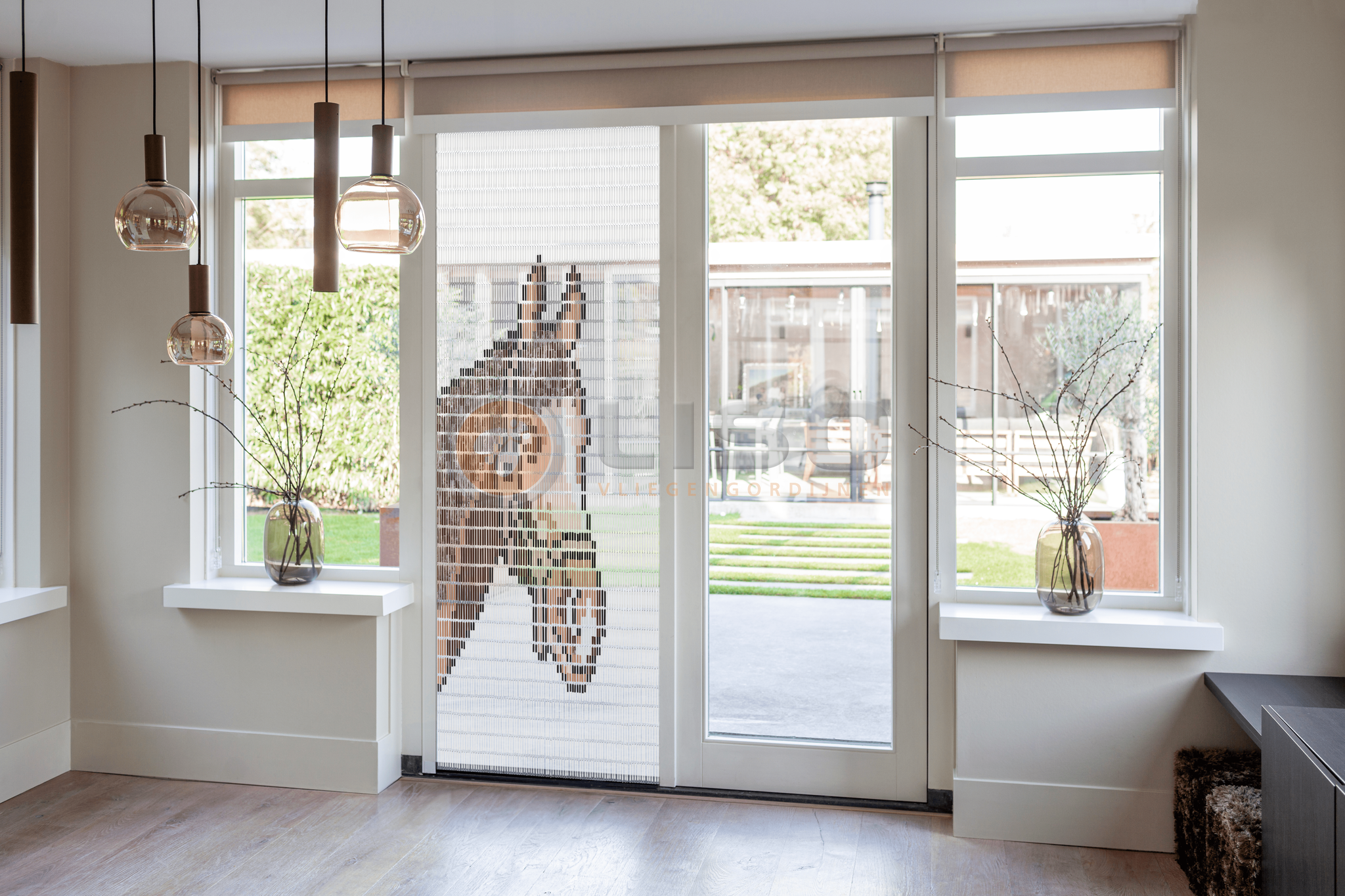 Liso ® Vliegengordijn met Paard heeft een mooi en vrolijk motief voor alle paardeniefhebbers. Dit Vliegengordijn is zeer nauwsluitend, hangt door zijn eigen gewicht snel weer stil en waait niet op bij wind. Dit Vliegengordijn komt als compleet doe-het-zelf pakket inclusief alle materialen die u nodig heeft om het vliegengordijn in elkaar te zetten. Het doe-het-zelf pakket komt met een uniek door Liso ® ontwikkelde aluminium ophangrail welke netjes is afgewerkt met dopjes op de uiteinden.