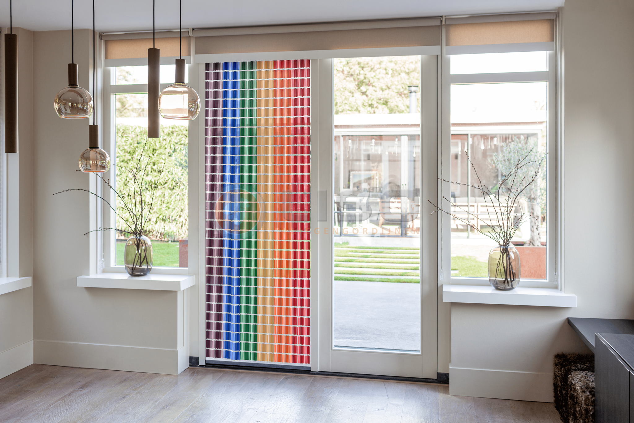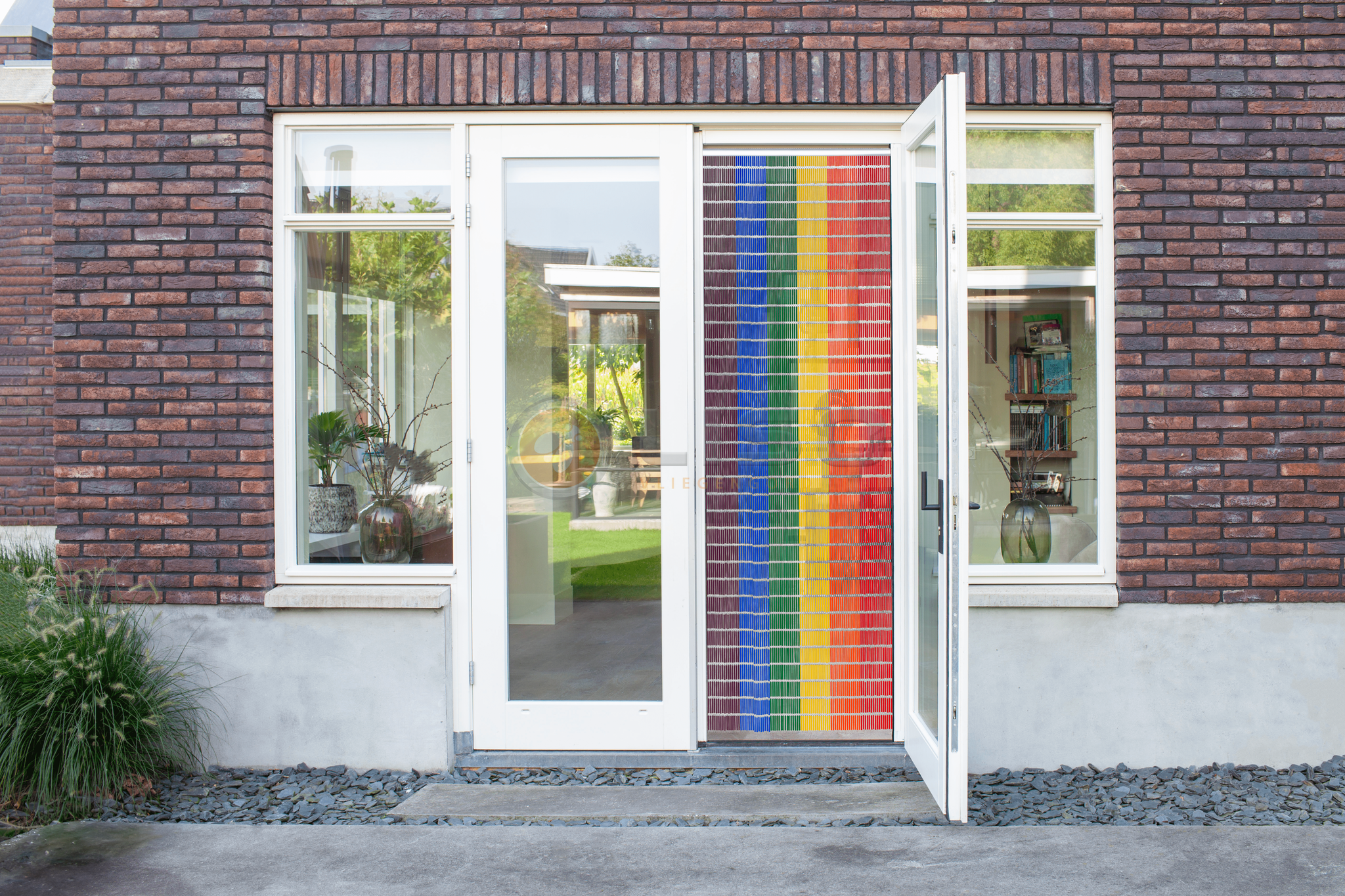 Liso ® Vliegengordijn met Verticale Regenboog is het perfecte gordijn om de vliegen mee buiten de deur te houden. Dit vliegengordijn is zeer nauwsluitend, hangt door zijn eigen gewicht snel weer stil en waait niet op bij wind. Dit vliegengordijn komt als compleet doe-het-zelf pakket inclusief alle materialen die u nodig heeft om het vliegengordijn in elkaar te zetten. Het doe-het-zelf pakket komt met een uniek door Liso ® ontwikkelde aluminium ophangrail welke netjes is afgewerkt met dopjes op de uiteinden.