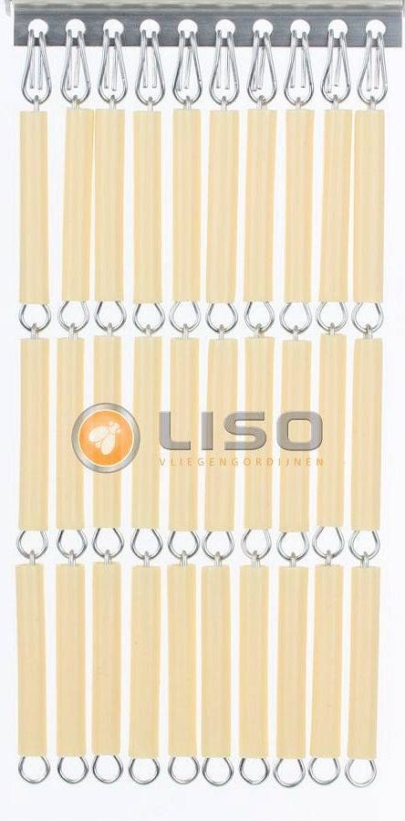 | Product eigenschappen Liso Hulsjes: LDPE [Lagedichtheidpolyetheen met UV stabilisator], dit is de originele zware kwaliteit. Liso Rijghaken: Gegalvaniseerde haken (deze roesten niet) in de originele dikke kwaliteit van 1'38mm Liso Steuntjes: Aluminium h-profiel met klittenband in de rug geplakt tegen het schuiven van de rail. Liso Rail: Geanodiseerd aluminium profiel met 100 gaatjes per meter en eind-dopjes ter afsluiting. |